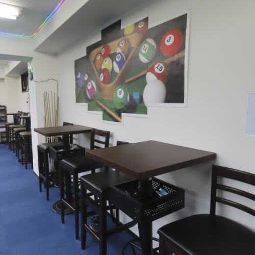 店内は落ち着いた照明に包まれた、気取らずくつろげる雰囲気です。ビリヤード台があり、仲間同士で楽しむこともできますが、遊ばない方に料金がかかることはありません。お酒や料理を味わいながら、それぞれの過ごし方ができる、居心地の良い空間です。
